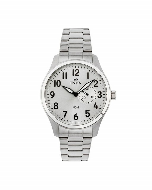 Inex Herre, Sølv 42mm En stilren og moderne herreklokke med lenke og urkasse i rustfritt stål. Klokken har en sølvfarget urskive med sorte timemarkører og visere. Urkassen måler 42mm og er 50m vannbestandig. NOK1 499,00 inkl. mva. På lager Kjøp Del dette