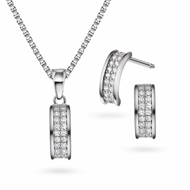 Sett i rhodinert sølv med zirkonia Høyde anheng: 12 mm. Høyde ørepynt: 10 mm. NOK699,00 inkl. mva. På lager Kjøp Del dette