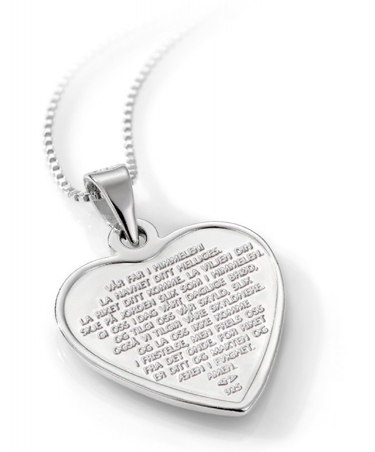 Halskjede med rosa hjerte i sølv Hjertet har et fint mønster i emaljen med en stjerne lengst opp. Sølvkanten har også ekstra nydelige detaljer i form av små sølvkuler. Med «Fader vår» gravert på baksiden er dette en populær gave til dåp, konfirmasjon og andre høytidelige anledninger. NOK1 065,00 inkl. mva. På lager Kjøp Del dette Produktinfo Dette er vårt største hjerte, designet av Arne Nordlie i 1950. Materiale: Sølv 925, glassemaljeFarge: RosaHøyde: 21 mmBredde: 19 mmKjede: 0,8 mm rhodinert Veneziansk kjede, 34/37 cm langtPasser til: Barn og voksenLanseringsår: 1950