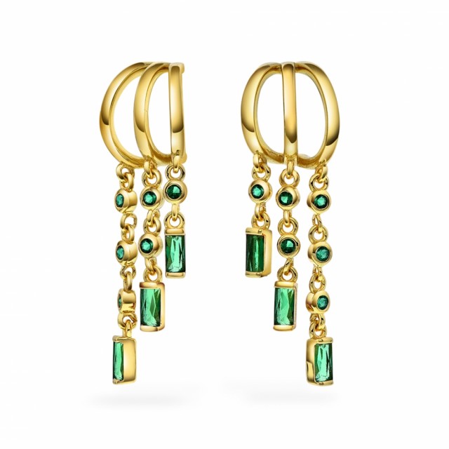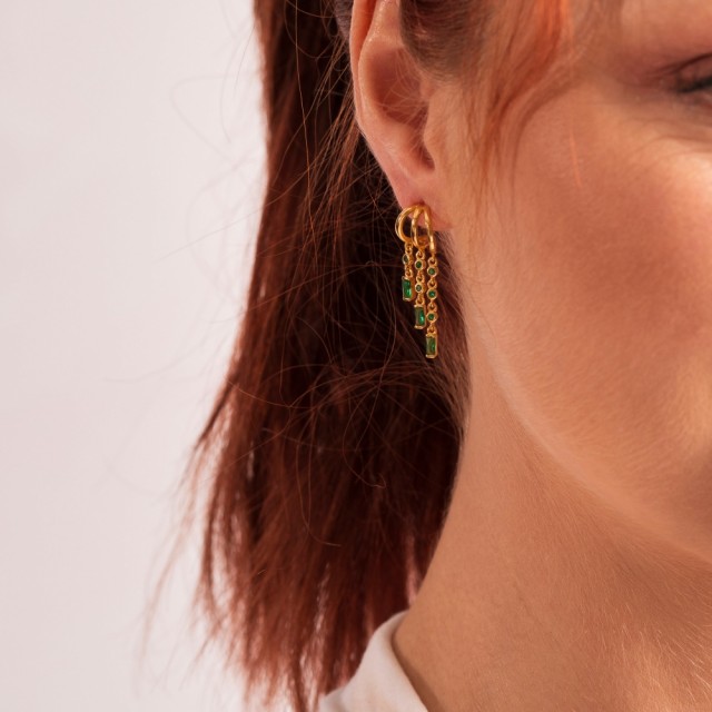 Rio radiance øredobber i sølv med grønn zirkon Forgylt Forgylt H:33 mm B:10 mm Pan Jewelry, Øredobber i 925 forgylt sølv med grønn zirkonia Elegante og tidsriktige øredobber med 3 dinglende rekker med heng av grønne zirkonia. NOK999,00 inkl. mva. På lager Kjøp Del dette